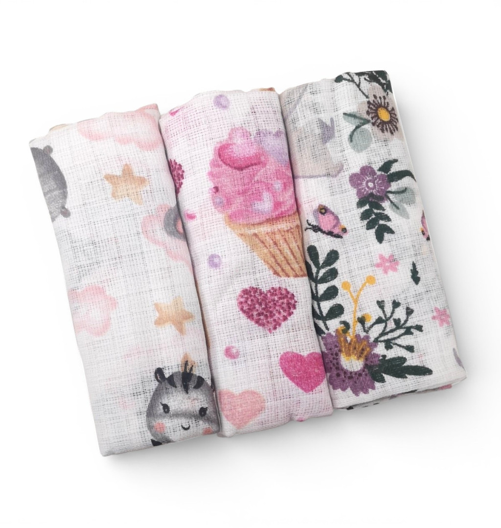 BS Textil pelenka 3db-os - Bébi állatok/Muffin/Nyuszi