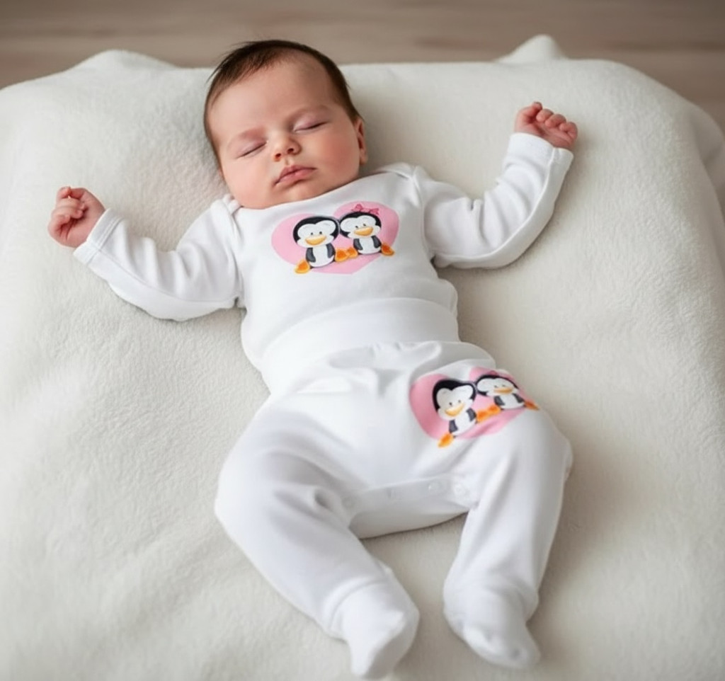 1. Puha, 100% pamut anyag – kényelmes és légáteresztő, ideális érzékeny bőrű babák számára.