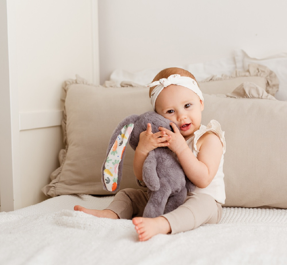 Kifejezetten babáknak tervezett, extra puha plüss anyagból készült – simogatása megnyugtatja és ellazítja a kicsit.