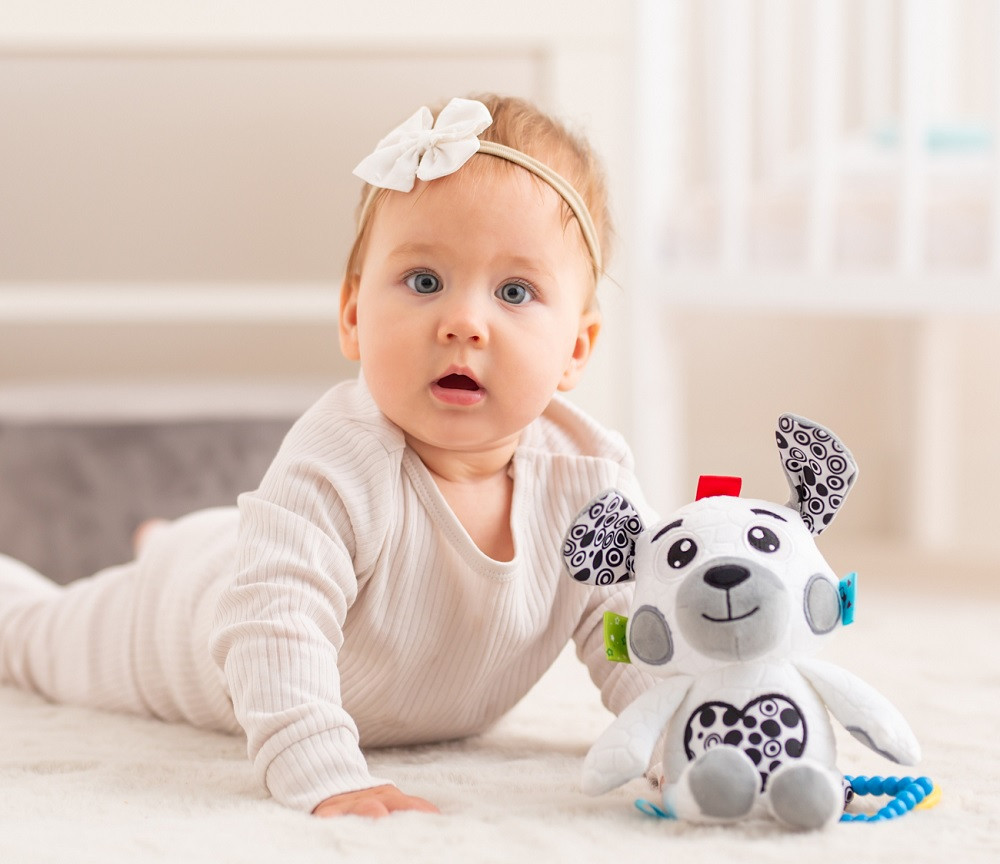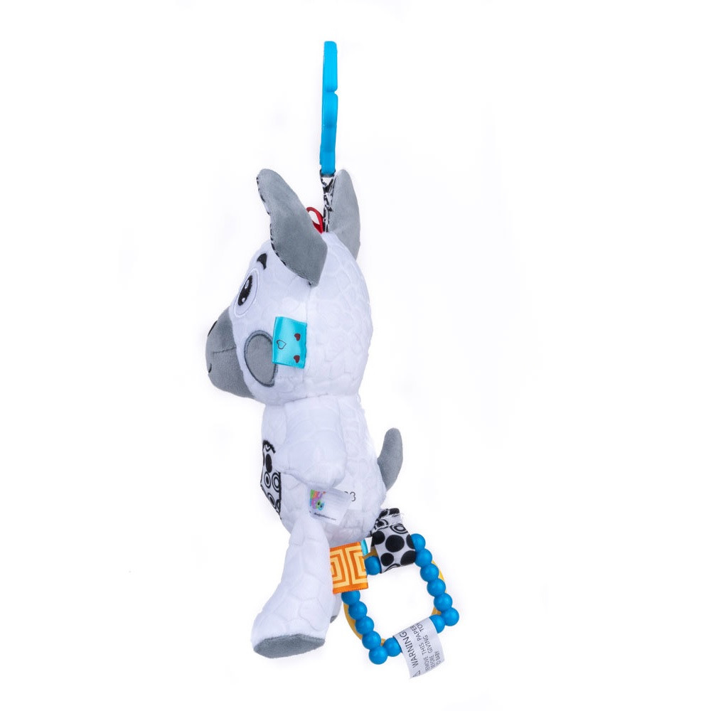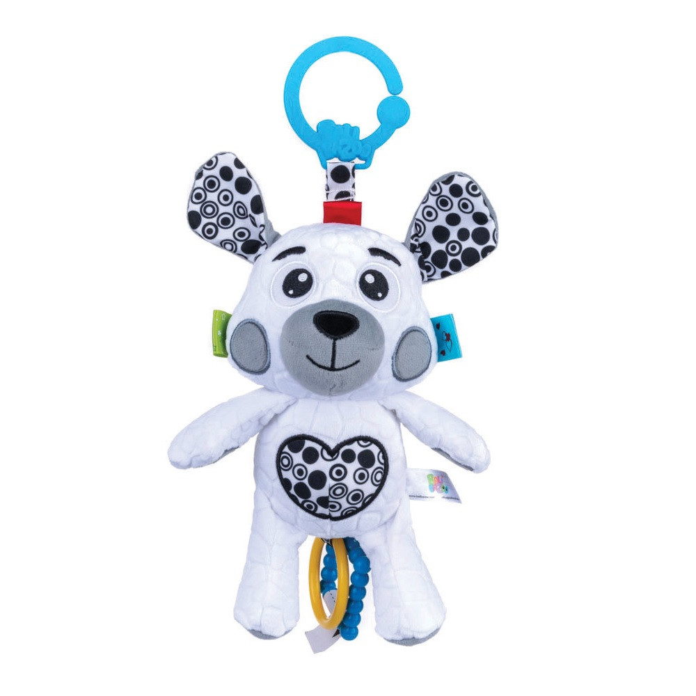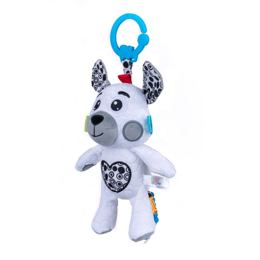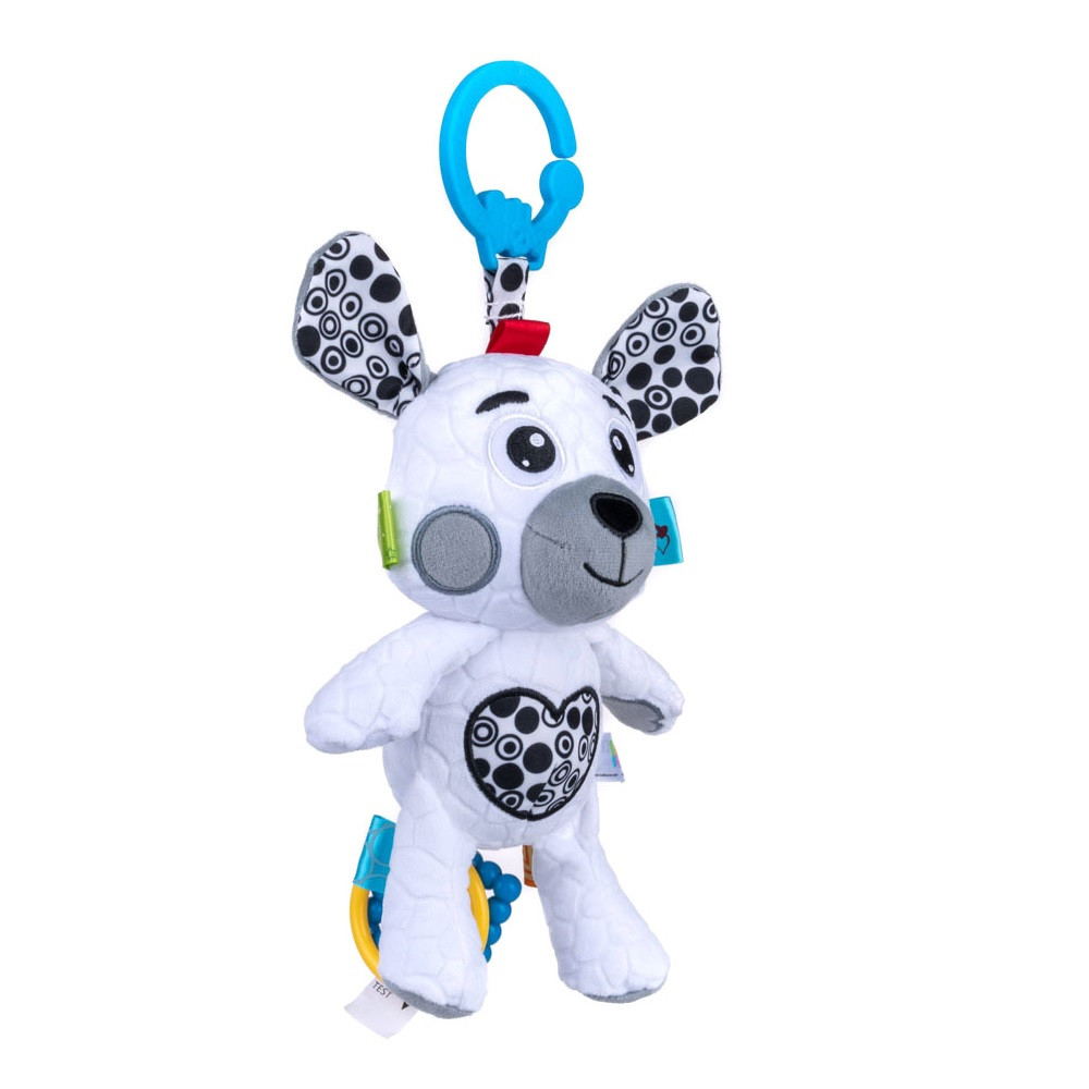 A Bali Bazoo Rögzíthető Kontrasztos Zenélő Kutyus szerethető, megnyugtató és fejlesztő játék, amely biztonságos társ a baba számára otthon és útközben egyaránt.
