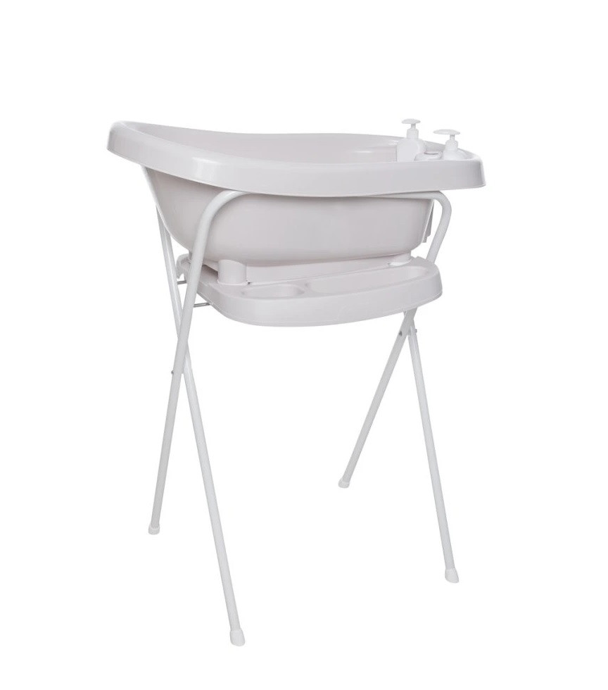 Ez a prémium minőségű babakád beépített vízhőmérővel, szappan- és samponadagolóval, valamint az innovatív Click-rendszerrel rendelkezik, amely lehetővé teszi a gyors és biztonságos rögzítést az állványra – mindössze két kattintással.
