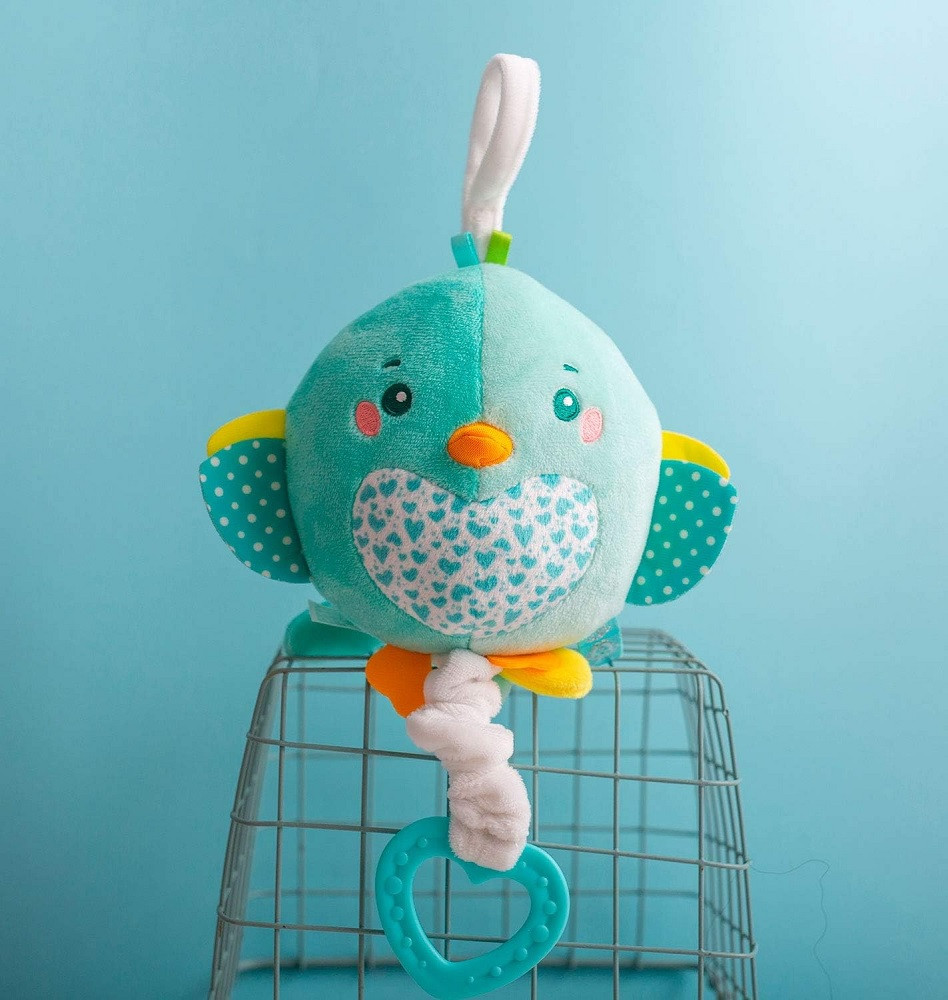 Ez a kedves, puha plüss madárka lágy dallamokkal segít megnyugtatni és elaltatni a babát. A beépített zene funkció kellemes, nyugtató hangokat játszik, amelyek biztonságérzetet nyújtanak a legkisebbek számára is.