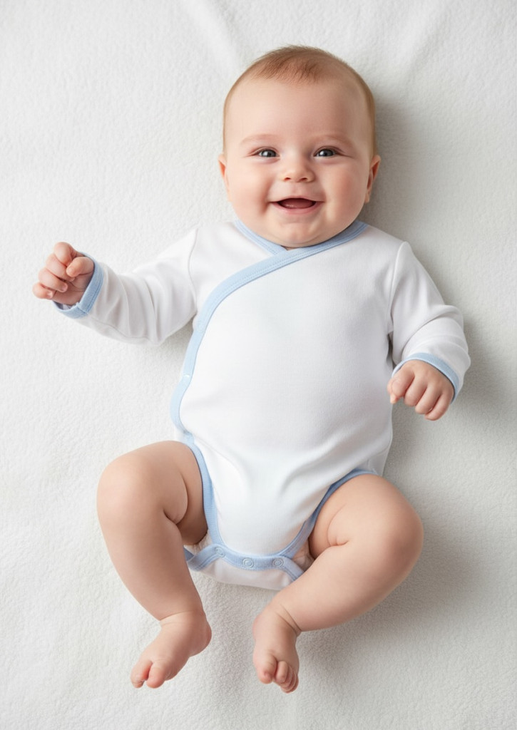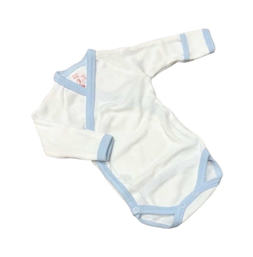 A réklis/átlapolós szabásvonal egyszerű és praktikus megoldást nyújt, különösen az újszülöttek és kisebb babák számára. A body könnyedén fel- és levehető, megkönnyítve a mindennapi öltöztetést és pelenkázást.