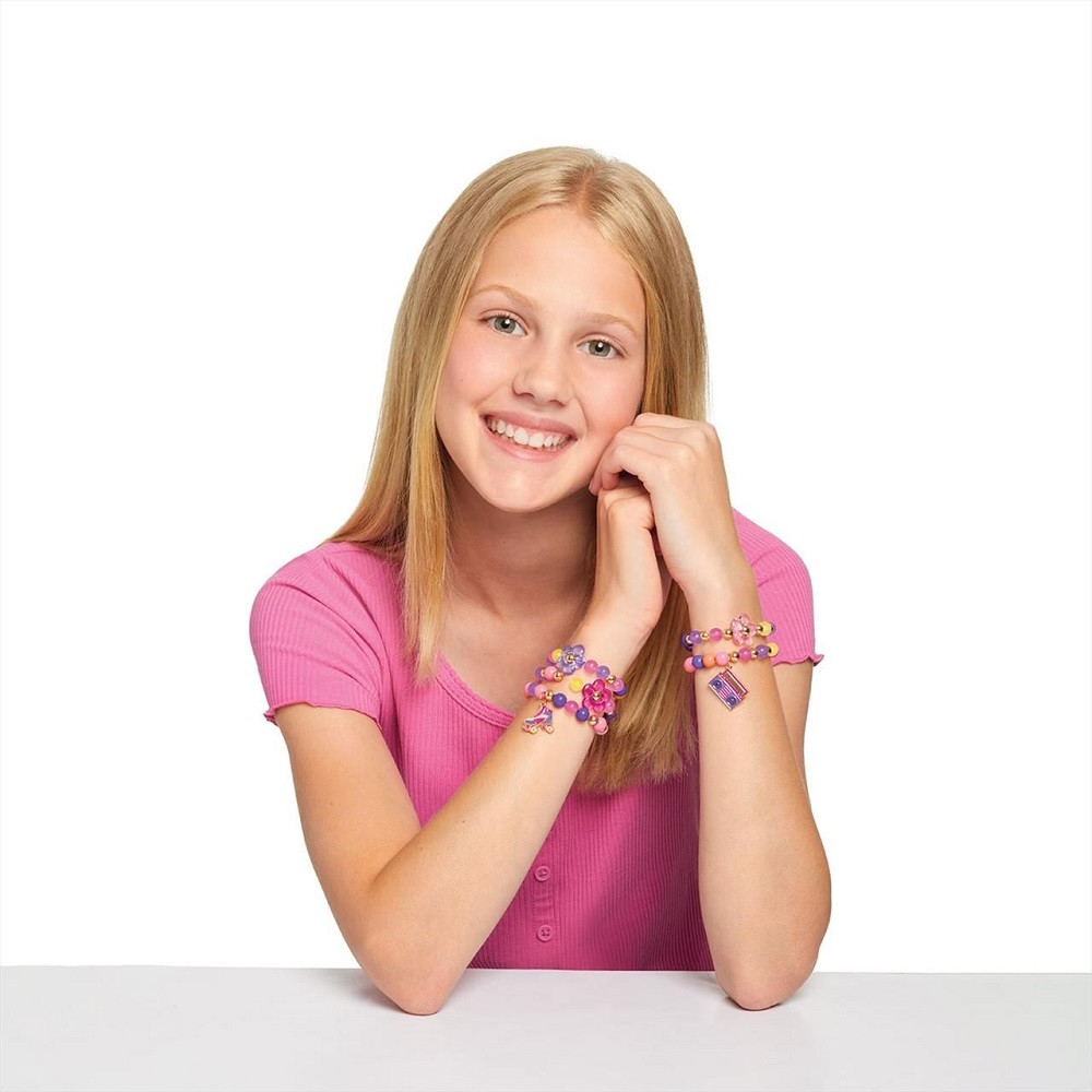 A csomagban található PlayTray tálca megkönnyíti a gyöngyfűzést, a szettben lévő fonál, gyöngykészlet és charmok pedig mindent biztosítanak akár öt egyedi karkötő elkészítéséhez. A kreatív alkotás közben a gyerekek fejleszthetik kézügyességüket, türelmüket és kitartásukat, miközben megtanulják, hogyan fejezzék ki önmagukat a saját ékszereiken keresztül.