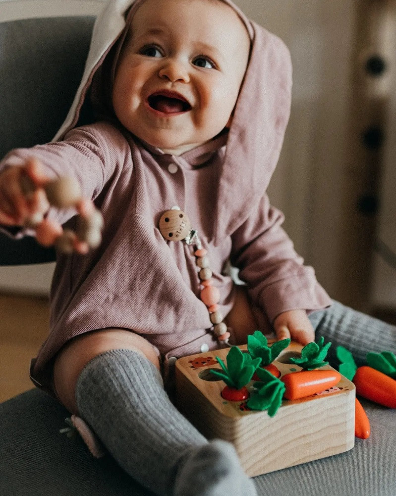 - Kellemes a fogzáshoz: A szilikon gyöngyök enyhítik a fogzási fájdalmat, miközben kíméletesek a baba érzékeny ínyéhez.
