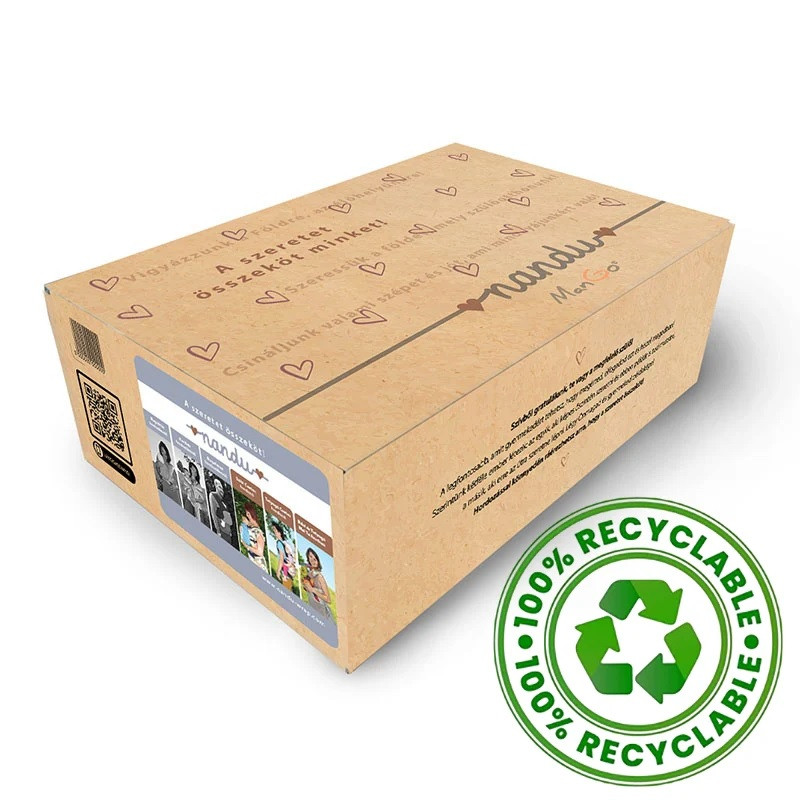 A hordozó környezetbarát kraft kartondobozban érkezik.