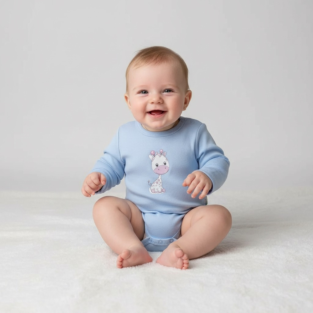 Ez a hosszú ujjú pamut body ideális választás, ha egy praktikus, kényelmes és divatos darabot keresel babád számára, ami könnyen kezelhető és vidám megjelenést biztosít.
