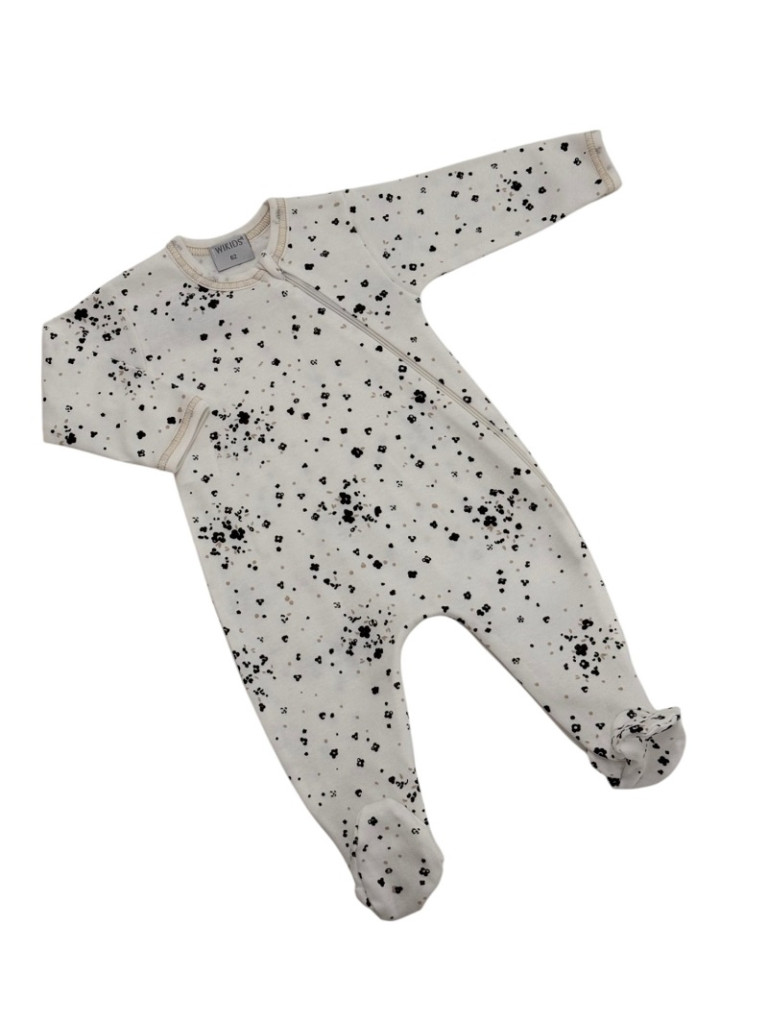 Wikids Hosszú ujjú cipzáros pamut rugi - Fehér/Fekete Apró Virágos - 56