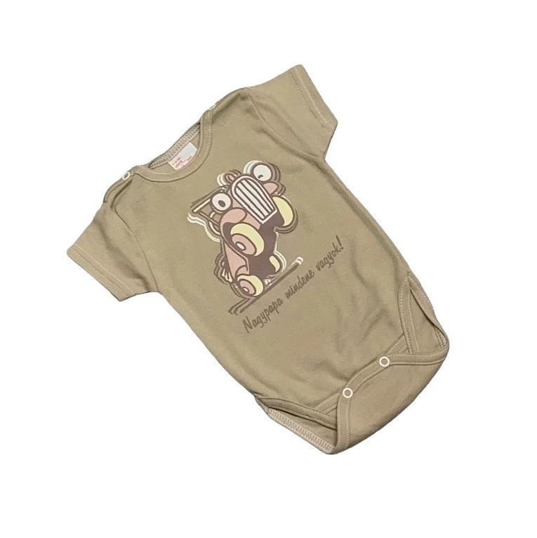 Gólyahír Rövid Ujjú Body Nyomott Mintás - Mogyoró Autós - 62
